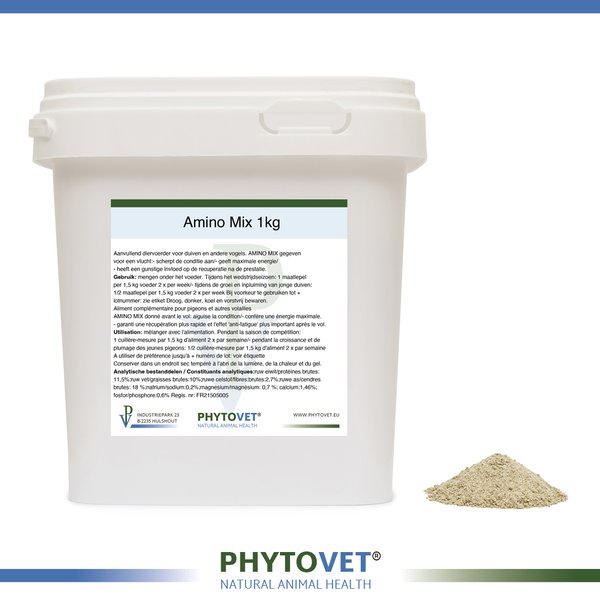 - during growth and feathering of young pigeons: 1/2 scoop per 1.5 kg feed 2 x per week